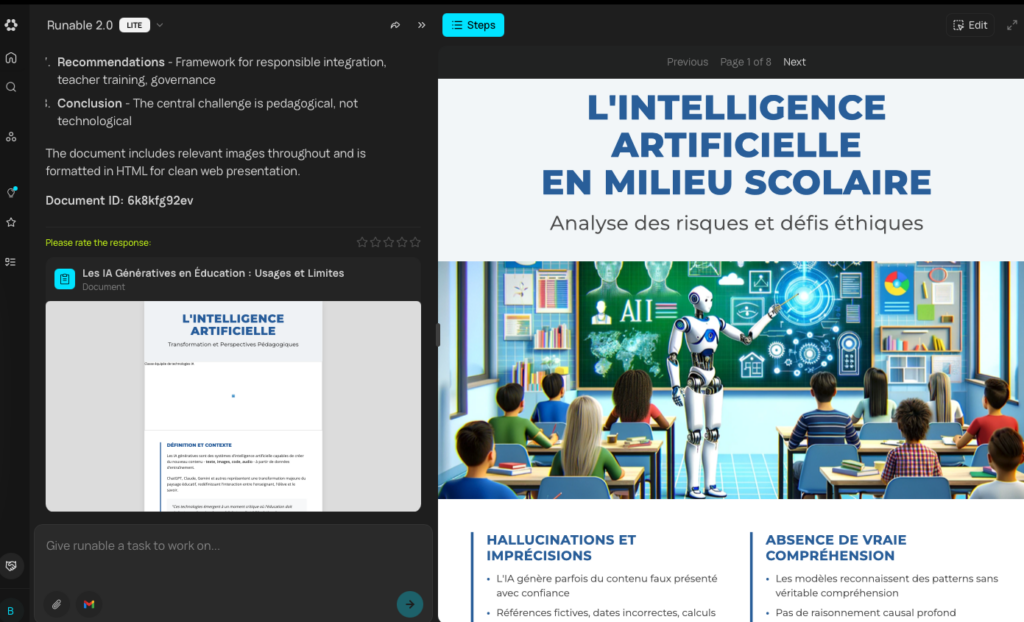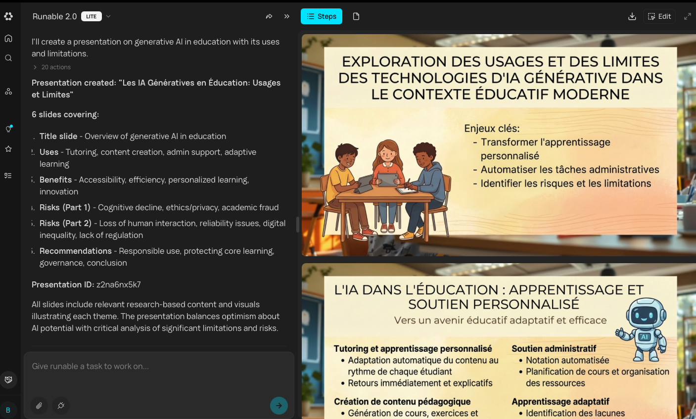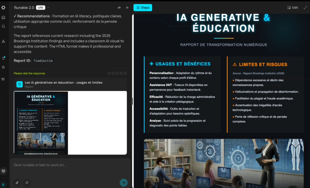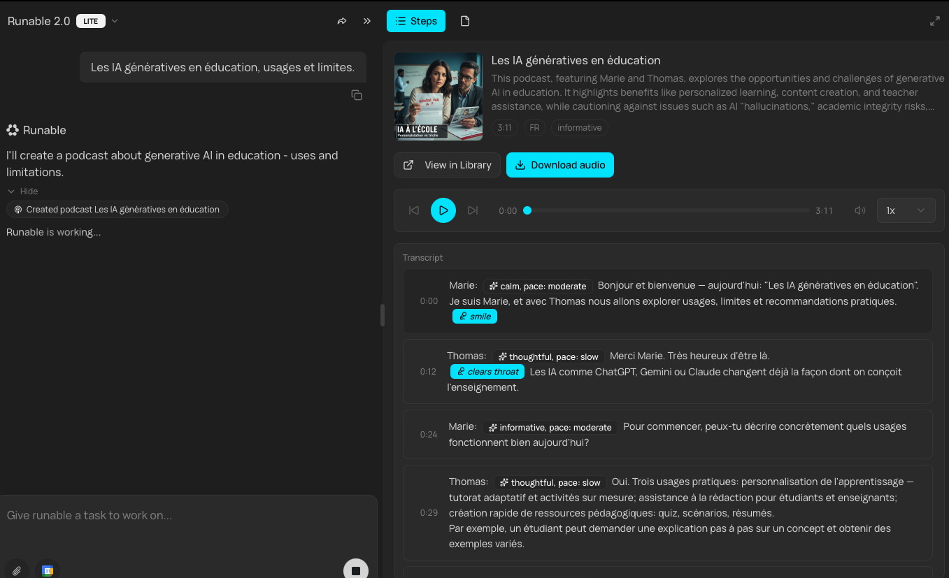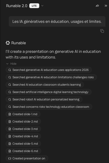 Runable (https://runable.com) réunit dans une même application plusieurs modèles récents et agents pour générer différents types de contenus texte, image, vidéo et voix.