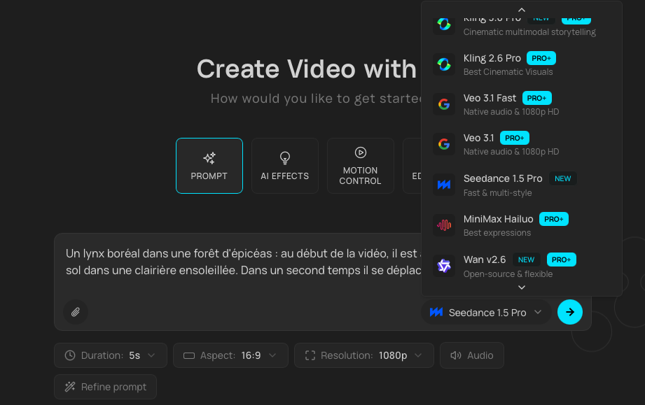 En version gratuite, 2000 crédits par mois (l’ensemble des générations ci-dessous a consommé 1500 crédits).