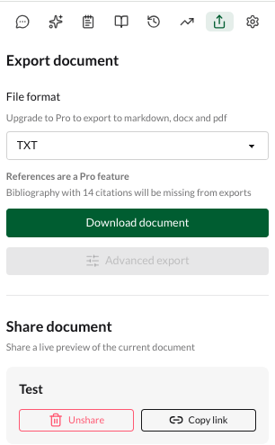 Export txt en version gratuite et partage par url.