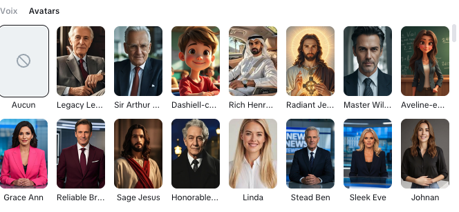 Nombreux styles, voix et avatars.