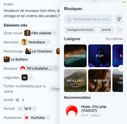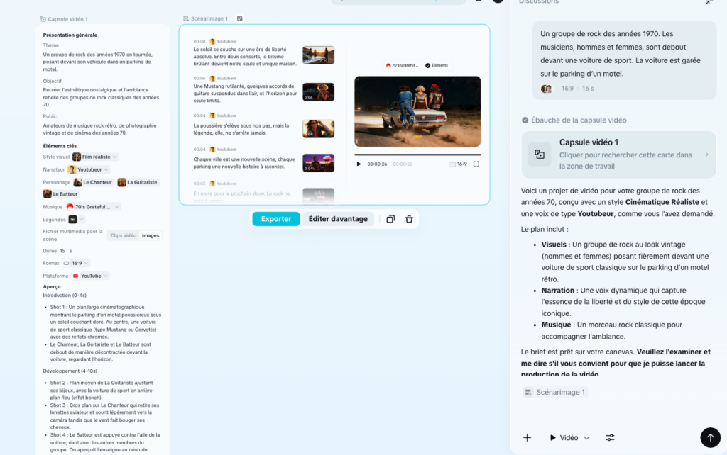 Sur Capcut, deux modes proposés : « clip vidéo » pour une génération d’une vidéo d’un plan de 15s et « vidéo complète » pour une vidéo constituée de plusieurs images fixes avec musique, voix et avatar. Ce dernier mode permet l’édition par scène.