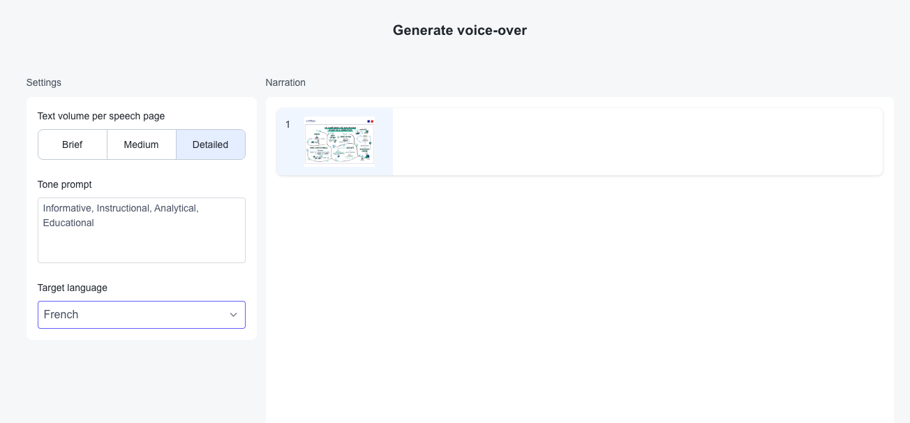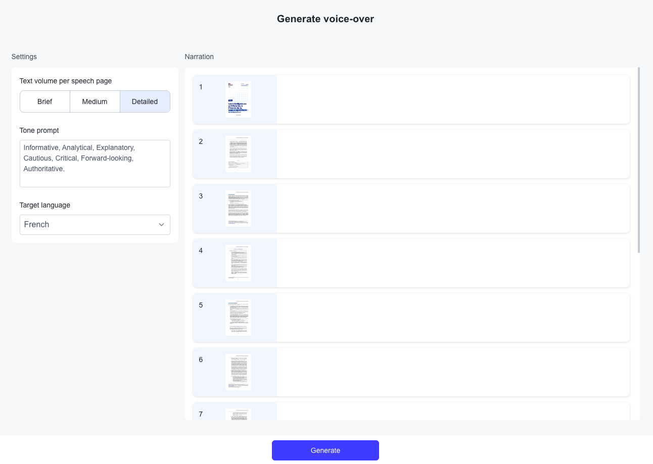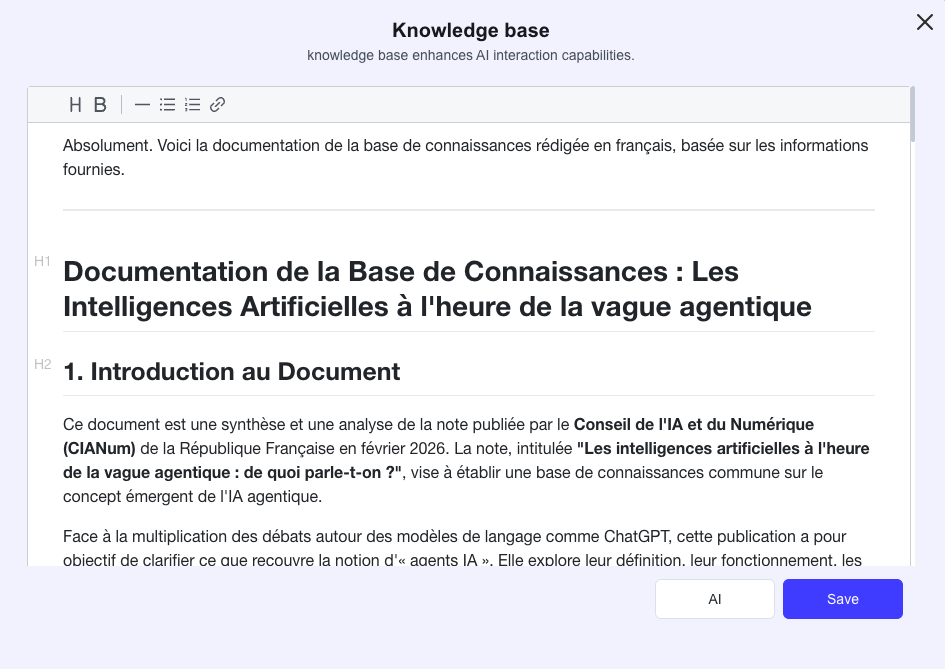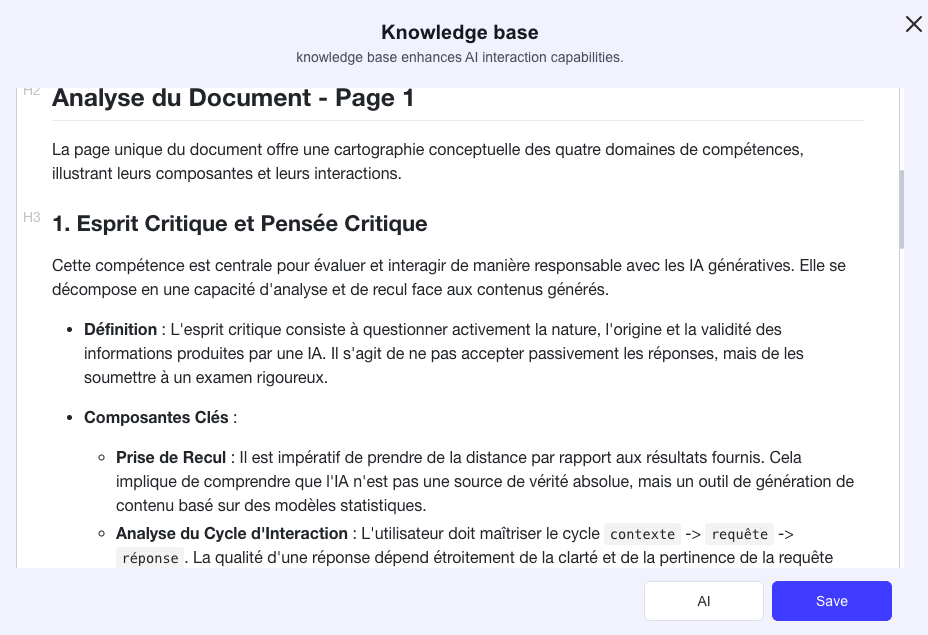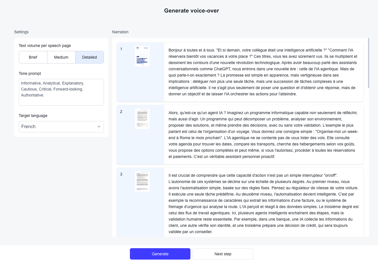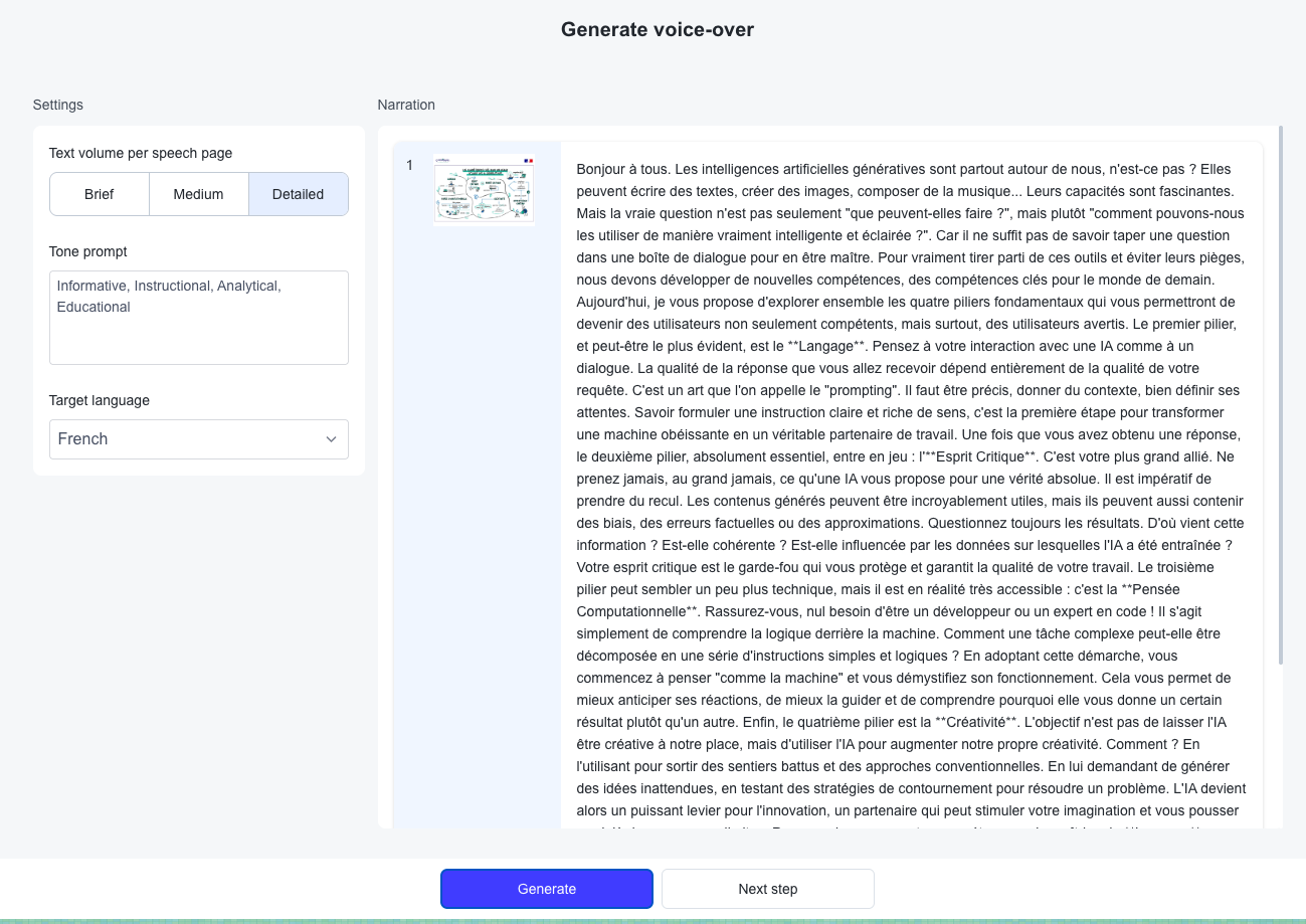 À partir du pdf, une base de connaissance est crée : elle est la base de la génration du script puis de la voix.