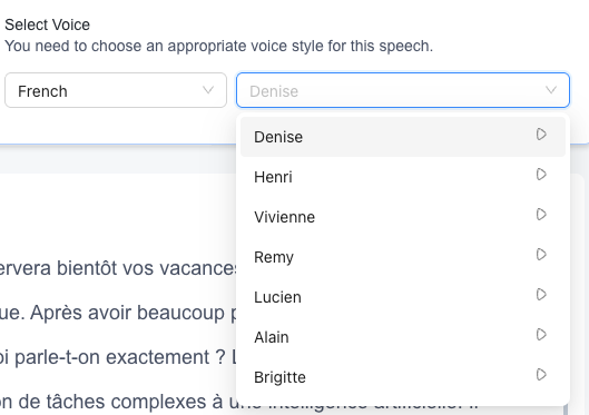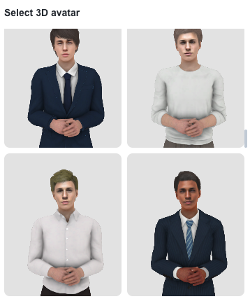 Choix de la langue, de la voix (27 voix françaises) et de l’avatar (une centaine)