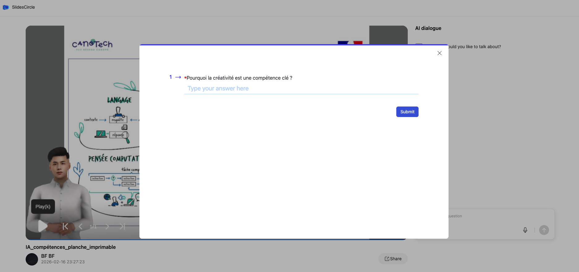 Un chatbot est ajouté à la vidéo publiée pour interroger le contenu.