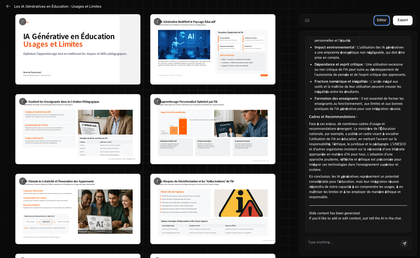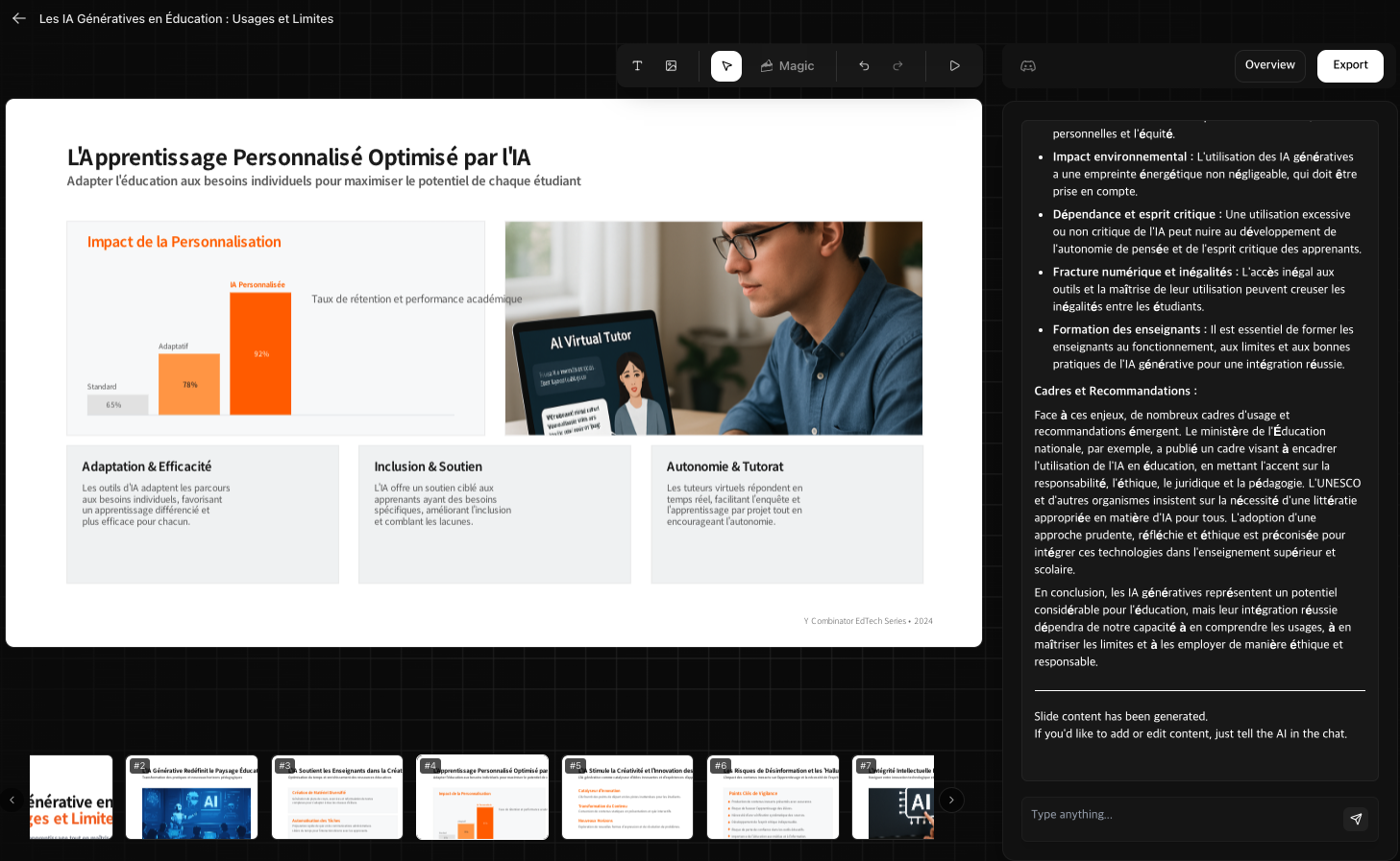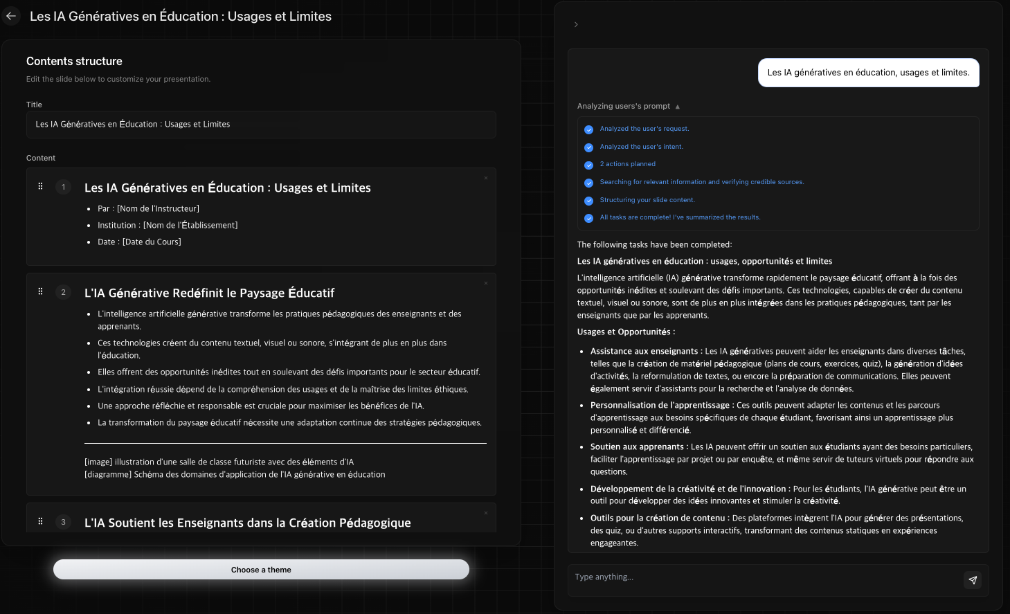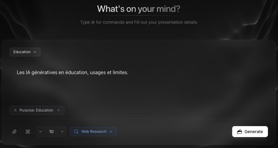 En version gratuite, 20 actions par mois et 10 diapos maximum par génération.