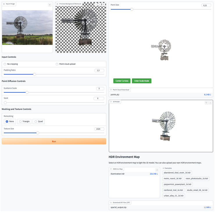 SPAR 3D (https://huggingface.co/spaces/stabilityai/stable-point-aware-3d…) transforme une image 2D en image 3D. Après avoir supprimé le fond et isolé l’objet, transforme en fichiers glb et ply. Nombreux paramètres disponibles. Open source et illimité. Images : wikimedia commons.