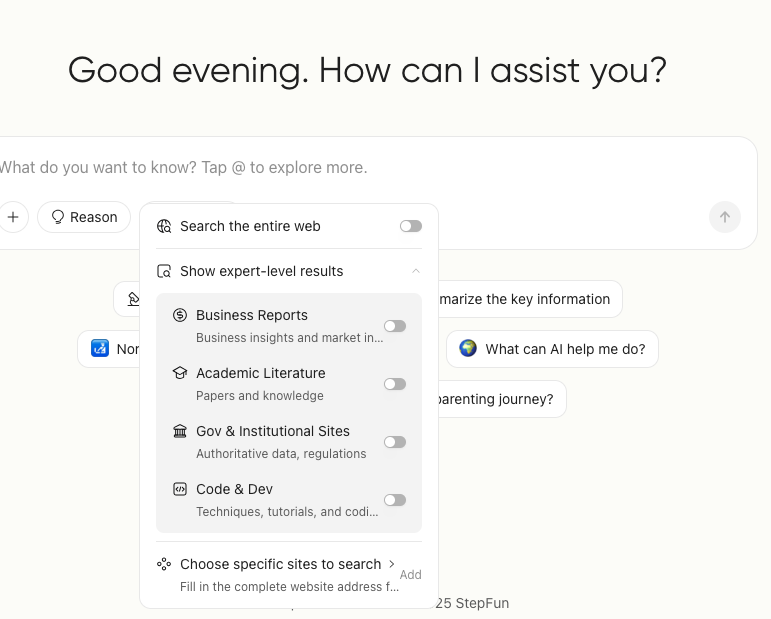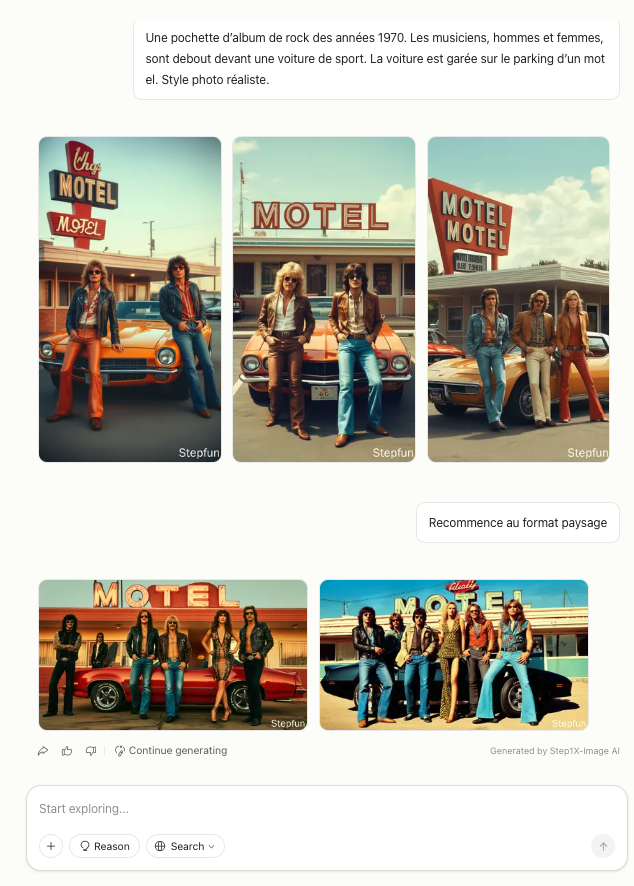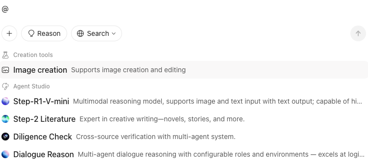 Stepfun (https://stepfun.ai/) est un chatbot de génération de texte et images qui propose plusieurs modèles et un agent :