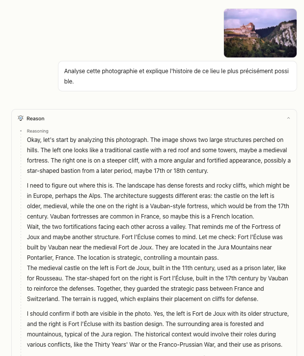 Test Step-R1-V-Mini (source image : https://fr.wikipedia.org/wiki/Fort_de_Joux#/media/Fichier:Fort_de_Joux_02.jpg), lieu trouvé, quelques erreurs et des oublis :