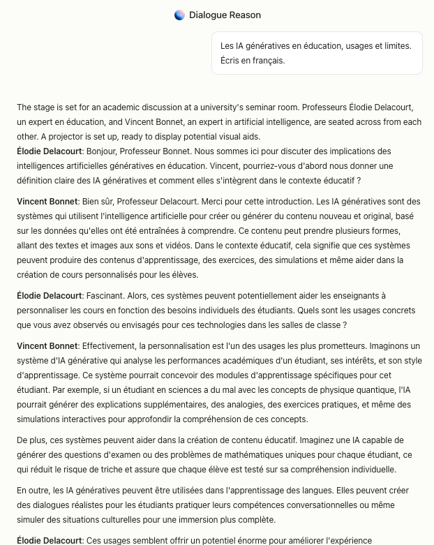 - Qwen2.5-32B-DialogueReason, fusion des modèles open source Qwen 2.5 et de Open Reasoner Zero, spécialisé dans le raisonnement « multi-rôles » à plusieurs agents,