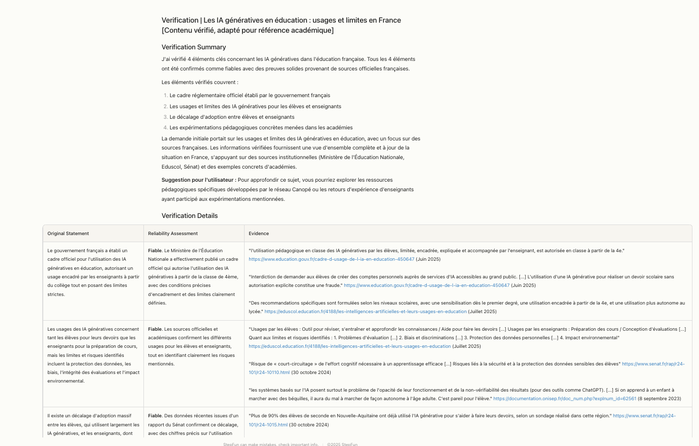 - Diligence Check, un agent spécialisé dans la vérification d’informations,