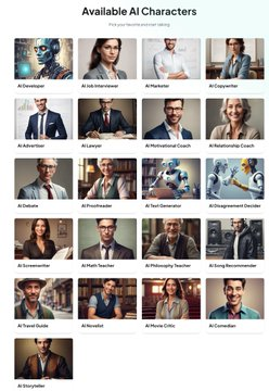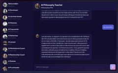 Talk to AI (https://talkto.ai) est un chatbot texte qui propose de converser avec l’un des 21 personas prédéfinis : développeur, critique cinéma, avocat, philosophe, etc. Basé sur les modèles Bert et RobertA. En EN, spécifier FR. Sans compte et illimité.