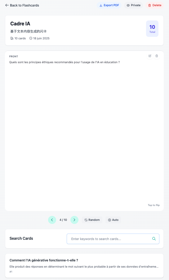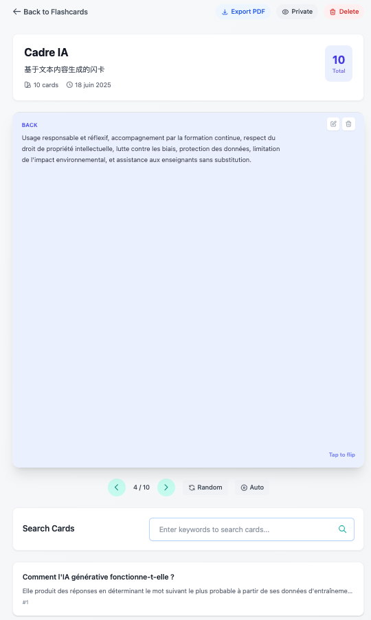 Sans compte sauf quiz, flashcards et chatbot avec fonctions limitées en version gratuite.