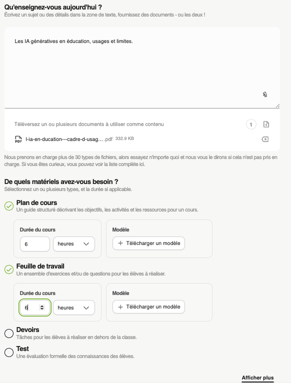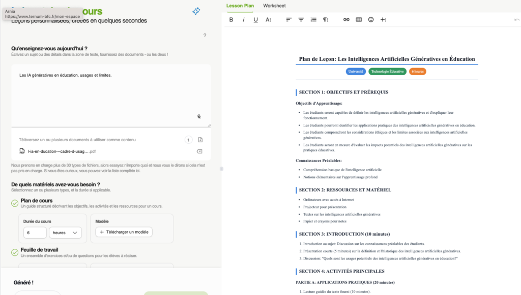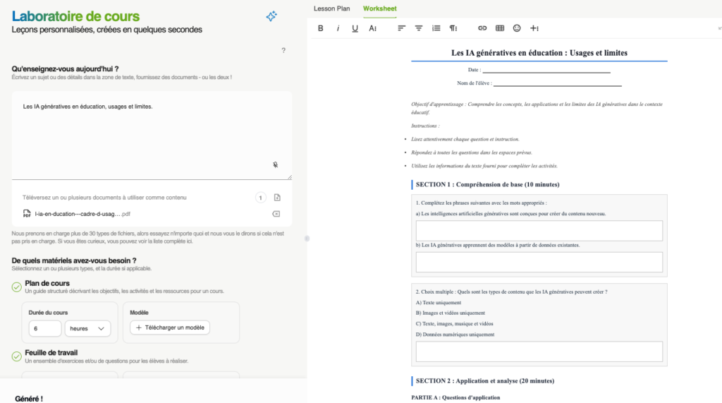 - laboratoire de leçons : génère des séances de classe, plan et documents d’accompagenement.