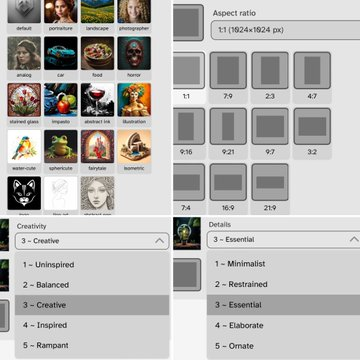 Tengr (https://tengr.ai) génère des images à partir de deux modes « Seer », créatif, et « Servitor », plus fidèle à la requête initiale. 19 styles, plusieurs formats, degrés de créativité et de détails. Image to image. 100 images gratuites par jour.