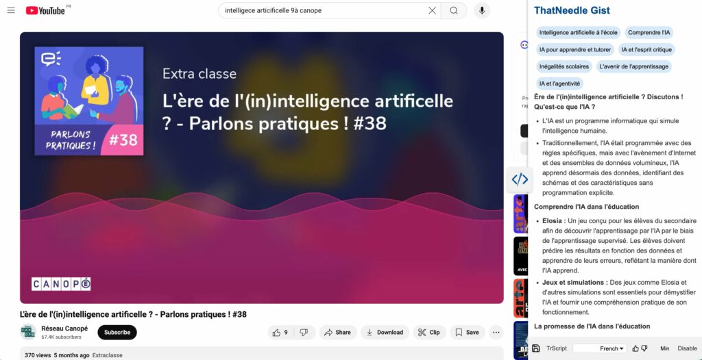 ThatNeedle Gist (https://gist.thatneedle.com) : extension Chrome qui génère le résumé d’une vidéo #Youtube + mots-clés. 21 langues et transcription intégrale disponible. Sans compte et illimité. Sources https://youtube.com/watch?v=1Rsj8mfQEeI… / https://youtube.com/watch?v=LNxcDavAWzg…