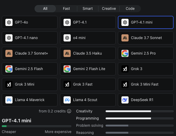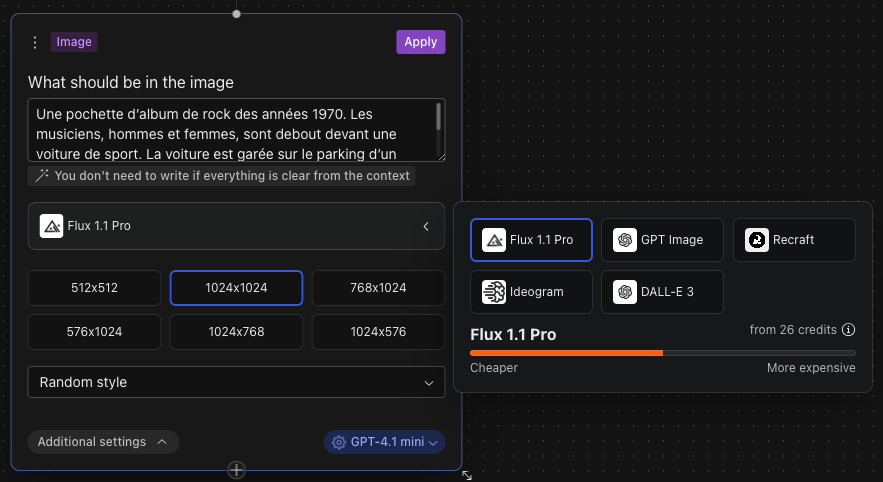 Plusieurs modèles de langage ou d’images sont proposés, à activer manuellement ou choisis par l’outils en fonction de l’instruction.
