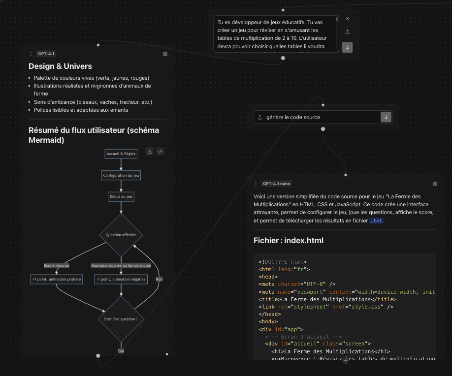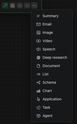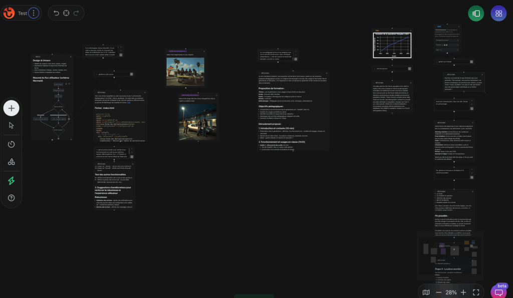 Tila (https://tila.ai/) regroupe en un seul outil sous forme de tableau infini toutes les générations possibles : texte, image, voix, vidéo, code, graphiques, agents, etc.