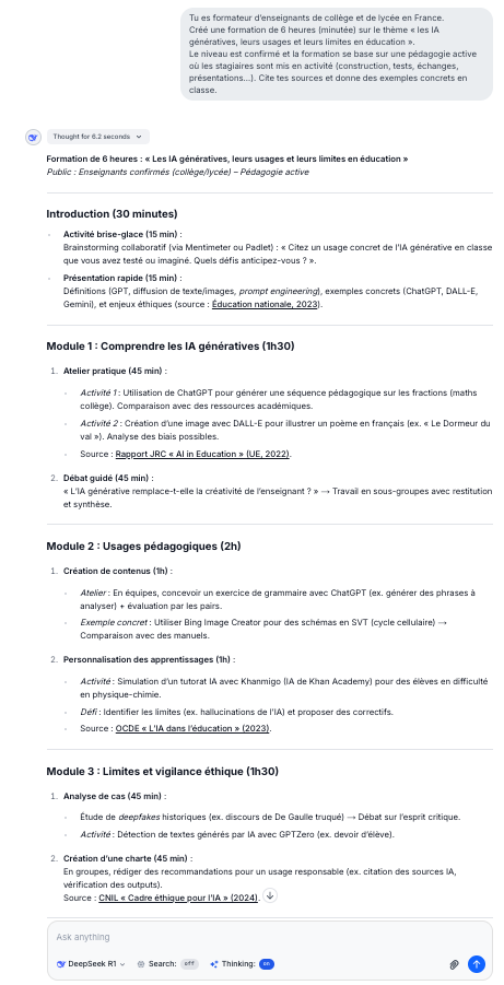 Avec raisonnement et recherche web selon les modèles et la taille de l’instruction.