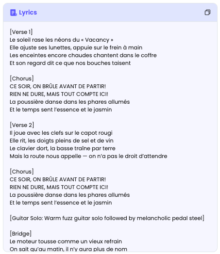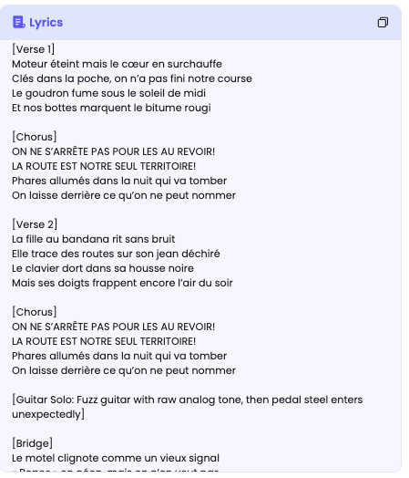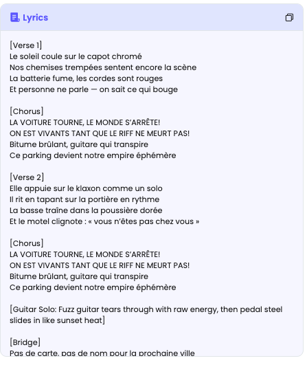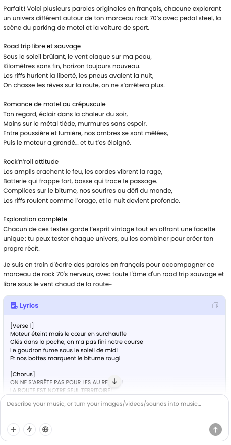 Grande fidélité à ce qui a déjà été produit : possibilité de générer musique et paroles en parallèle puis de les fusionner.