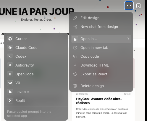 Variant (https://variant.com/) génère des designs de sites ou d’applications à partir d’une instruction.