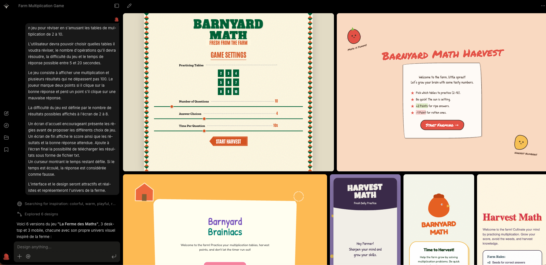 6 designs sont générés par instruction. et positionnés dans une grille.