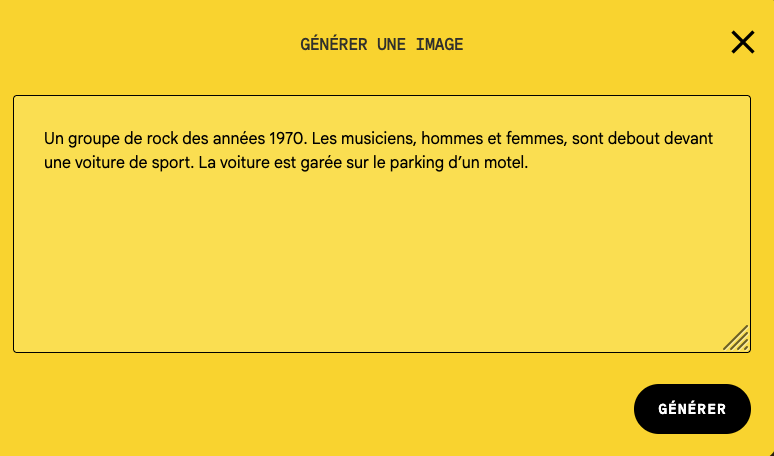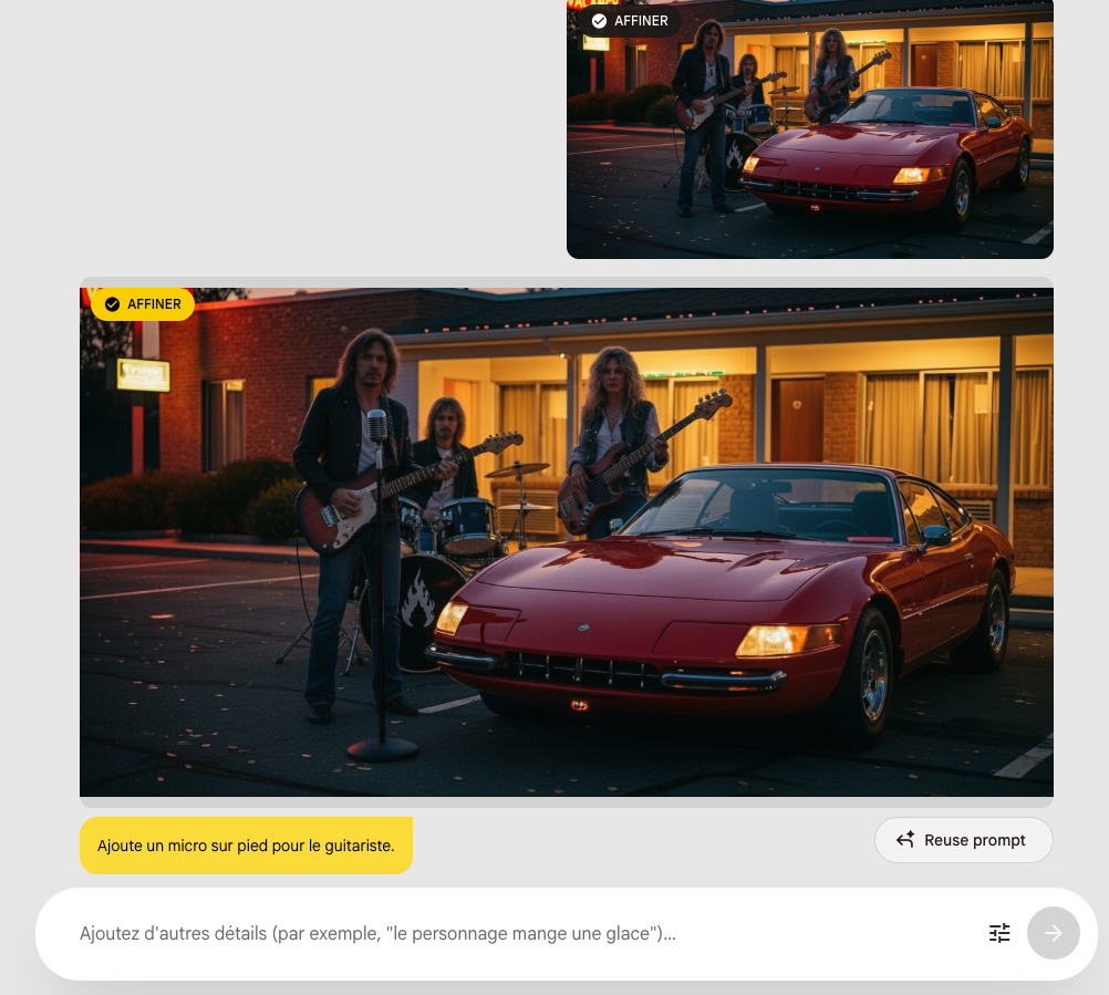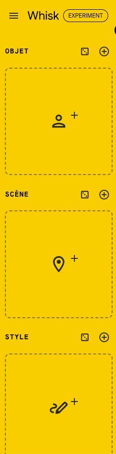 Les images « d’inspiration » représentent objet, scène et style. Plusieurs peuvent être transmises et elles peuvent être générées.