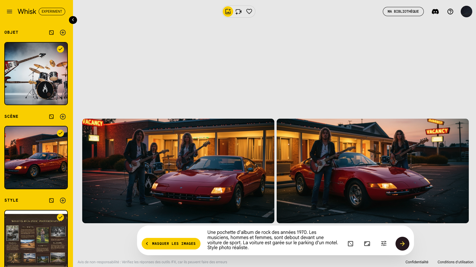 Whisk (https://labs.google/fx/fr/tools/whisk) génère des images et des vidéos sonorisées à partir d’images « d’inspiration » qui peuvent être complétées par une instruction.