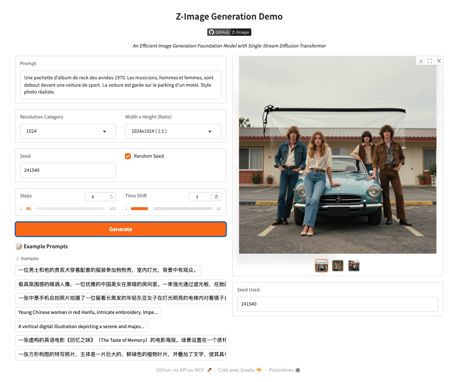 Z-image (documentation : https://github.com/Tongyi-MAI/Z-Image et démonstration version Turbo : https://huggingface.co/spaces/Tongyi-MAI/Z-Image-Turbo) est un modèle de génération d’images léger (6 millions de paramètres) et rapide.